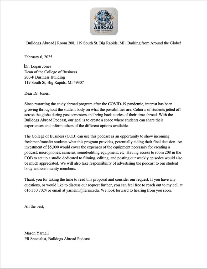 During my time at Ferris State University, I’ve taken several PR courses that have grown my skills as a storyteller and creative thinker. Here are a few of my favorite pieces that showcase my work!