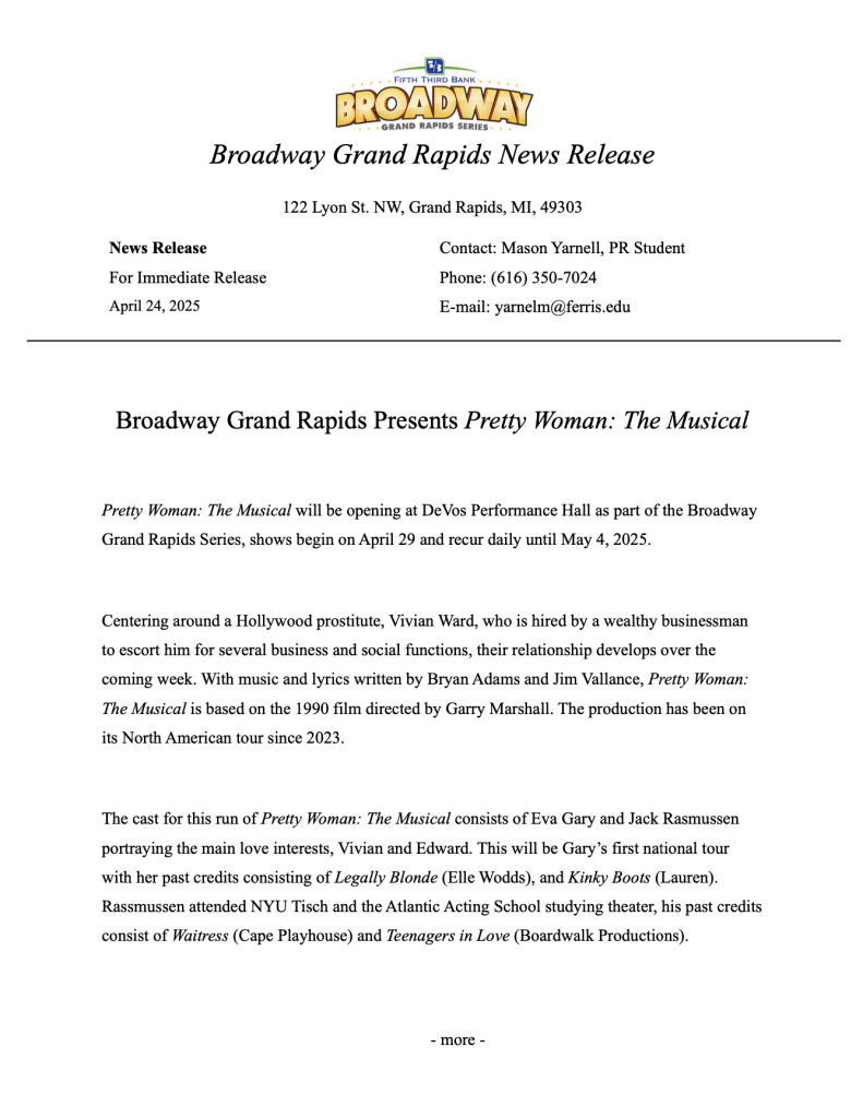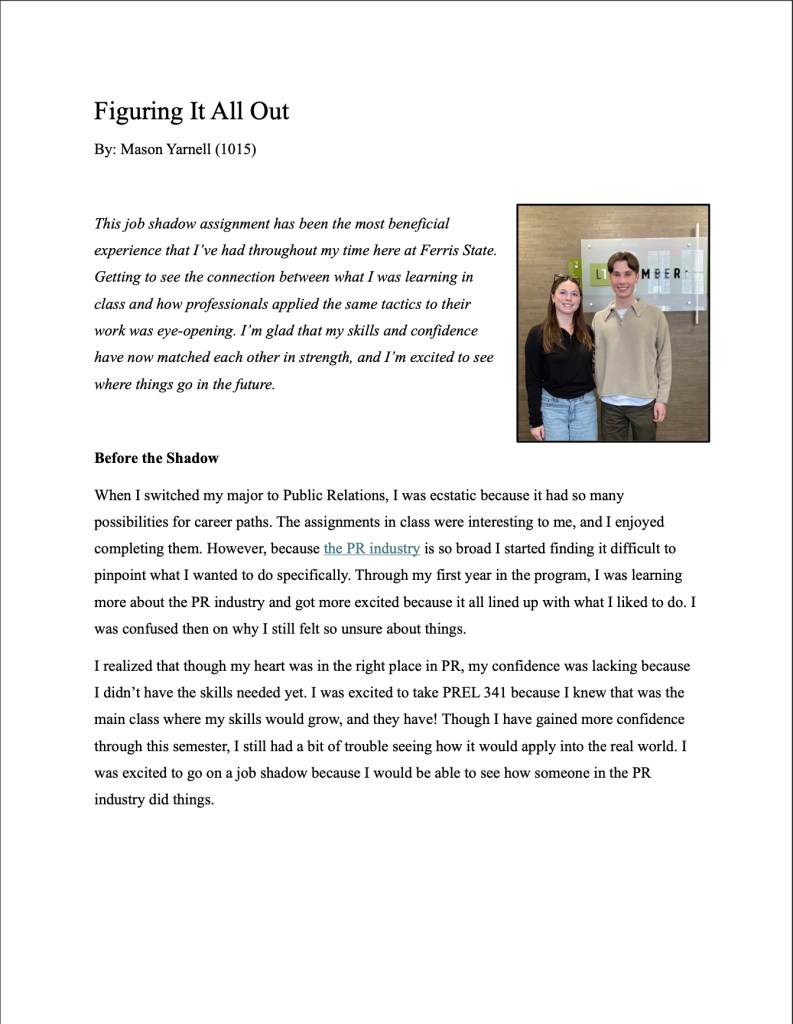 During my time at Ferris State University, I’ve taken several PR courses that helped me grow as a storyteller and creative thinker. Here are a few of my favorite pieces that showcase my work!